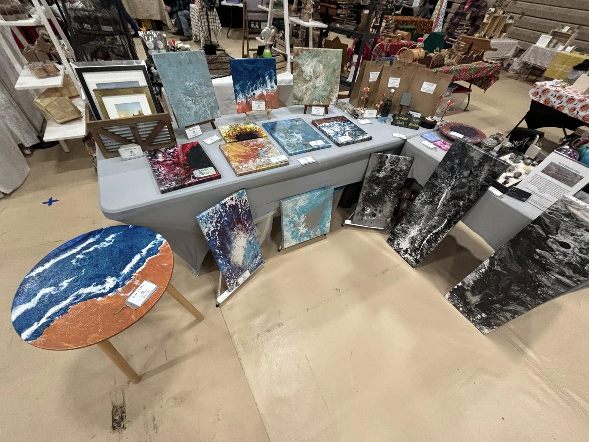 We have many different items we offer! Including; Paint Pours, Rock Magnets, Ornaments, and candles (NEW!)
